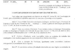 Publicada no Diário Oficial, extinção da Fundergs no RS é autorizada Foi publicada no Diário Oficial do Rio Grande do Sul nesta terça-feira (5) a autorização para que a Fundação de Esporte e Lazer do estado ...